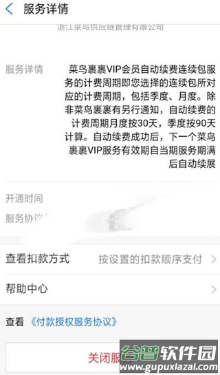 4、在列表内定位菜鸟裹裹自动续费服务,点击后按指引关闭自动续费功能。
