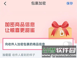 2、在更多页面选择包裹加密,开启向收件人隐藏商品信息的开关即可完成设置。