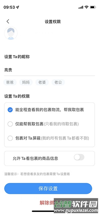 3、亲友包裹管理:绑定亲友手机号,代为收取包裹并同步物流动态;