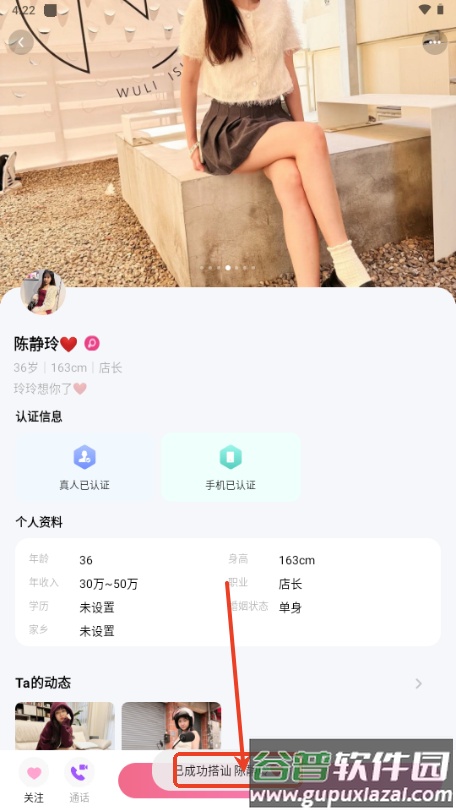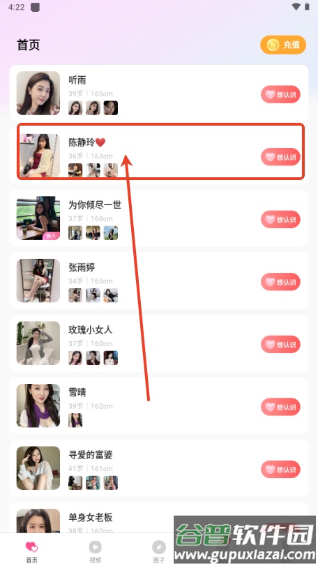 5、成功登录后即可浏览推荐用户,开始你的交友过程。