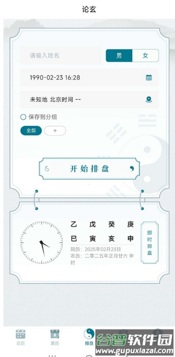 3、在排盘功能页输入姓名与生辰等信息,即可获取相应分析报告。