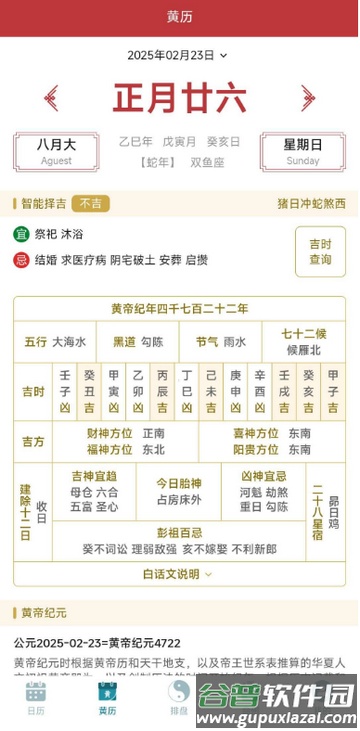 4、黄历专页提供黄帝纪元等传统历法相关信息查询。