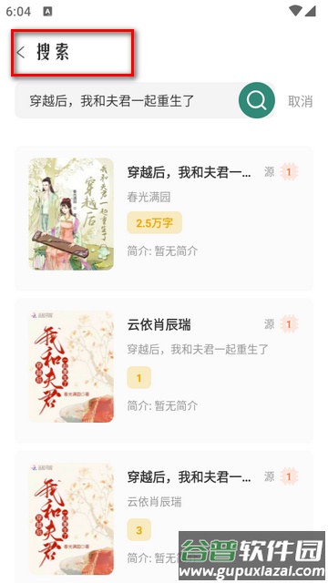 1、启动软件,在顶部的搜索栏输入书名或作者名进行查找;