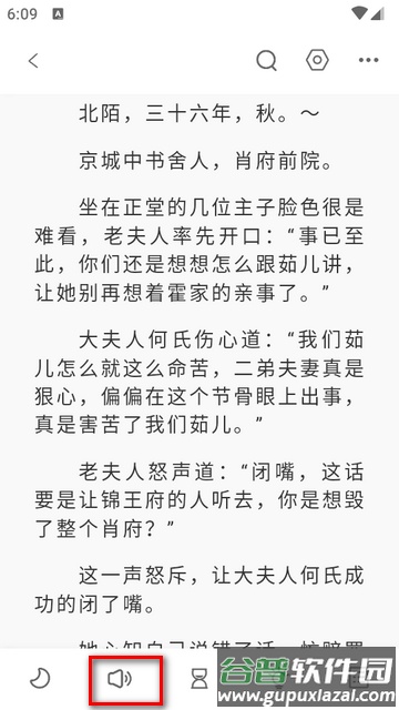 1、打开正在阅读的小说,点击屏幕中间调出菜单,找到并点击下方的喇叭图标;