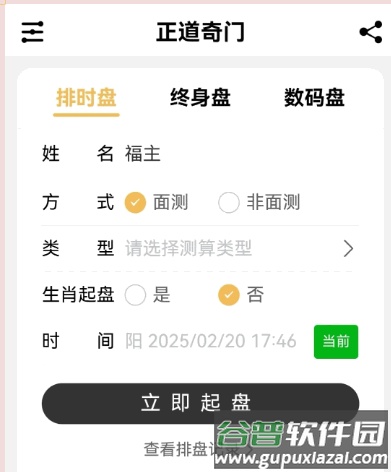 采用当前时间或指定时间进行排盘,用于推测当下或未来某些事物的进展状况。