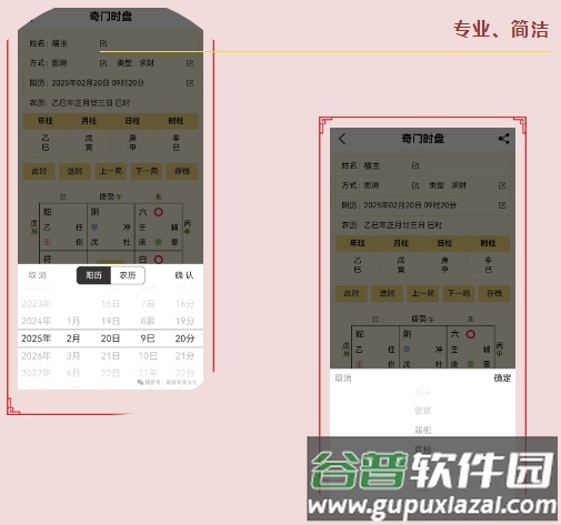 我们设计了专业、简洁且视觉舒适的功能界面,确保您在操作时获得良好的体验;排盘界面无需退回,可直接上下切换时辰进行排盘,也能快速重新起盘,提升了使用效率;软件同时支持存档功能。(在当前结果页重新排盘的信息不会自动保存至记录,需手动完成存档)