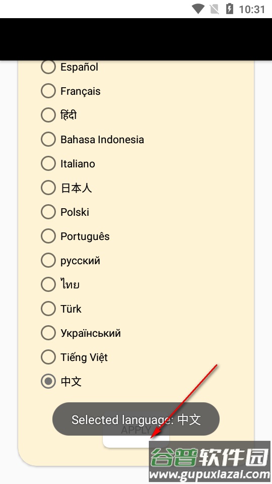 4、最后点击底部的“应用”按钮即可完成语言切换。