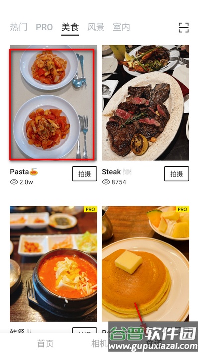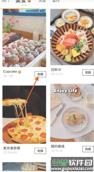 2、切换到美食标签页,选择喜欢的拍摄效果,点击拍摄按钮;