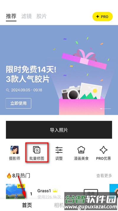 1、进入软件首页,找到并点击批量修图功能;