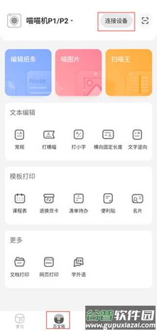 1.进入“百宝箱”页面,点击“连接设备”选项。