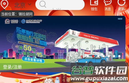 4、未注册的用户也可通过客户端对加油卡主卡进行快速充值,并查询附近的加油站网点信息。
