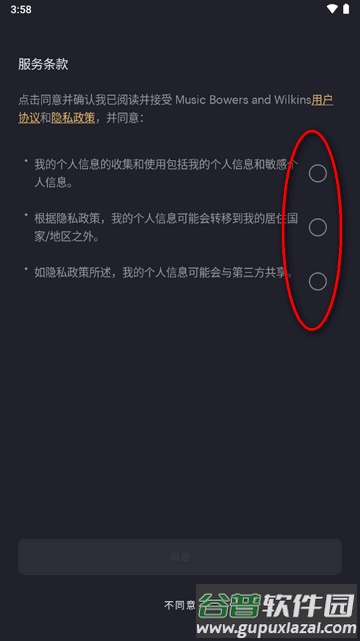 2、打开软件后阅读服务条款,点击同意进入下一步。