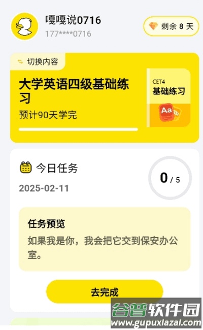 3、点击“去完成”按钮,即可直接进入当天的学习环节;
