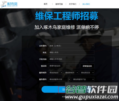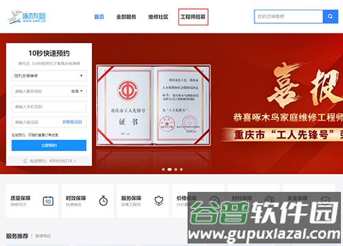 1. 访问啄木鸟家庭维修APP官方网站,点击“工程师招募”入口;