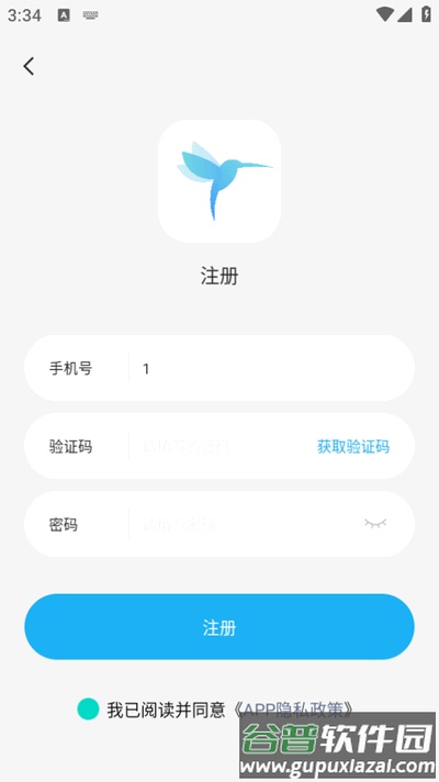 2、输入手机号、验证码并设置密码完成注册