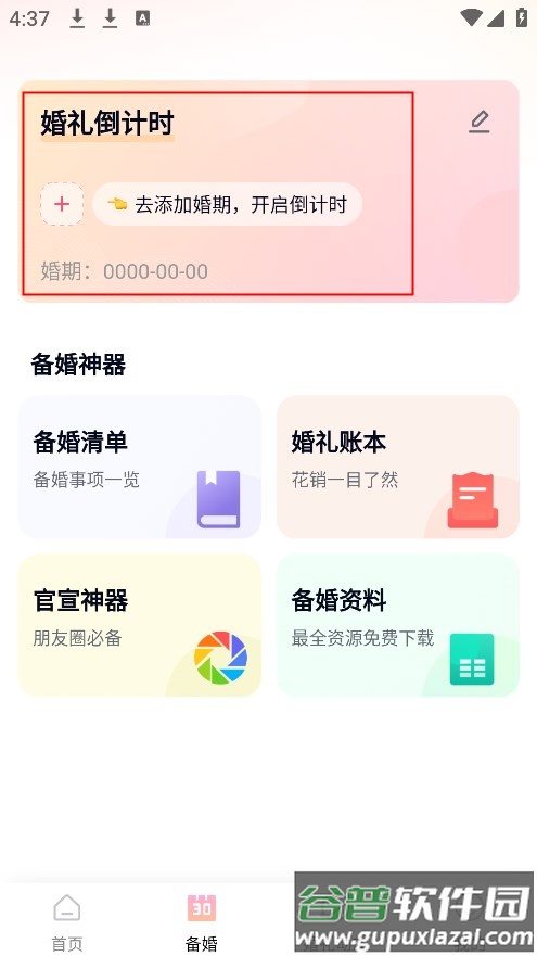 1.在本站下载安装找我婚礼APP,打开后点击首页的备婚入口;