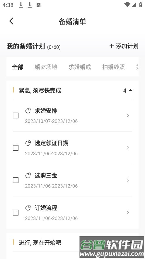 3.打开备婚清单板块,逐步添加婚礼需要完成的各项流程事项;