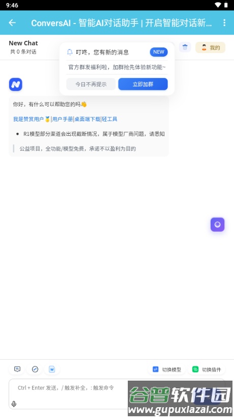 该软件首批对接了ChatGPT双千亿级大语言模型,提供多元化智能服务。用户可免费无限制使用GPT-4、文心一言等模型及插件功能,获得流畅的交互体验。