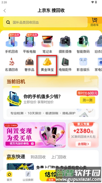 2、打开软件后,点击界面中央的旧物回收入口,该功能实际接入的是京东回收服务。