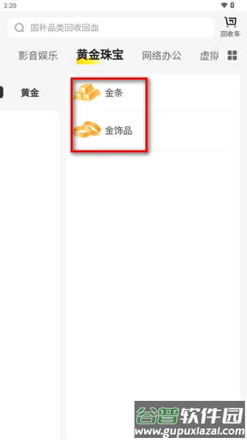 3、从列表中选择你想要回收的物品类别,点击进入下一步。