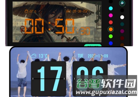 1.提供全屏与悬浮两种时钟模式,搭配多种动态皮肤,可按心情自由更换。