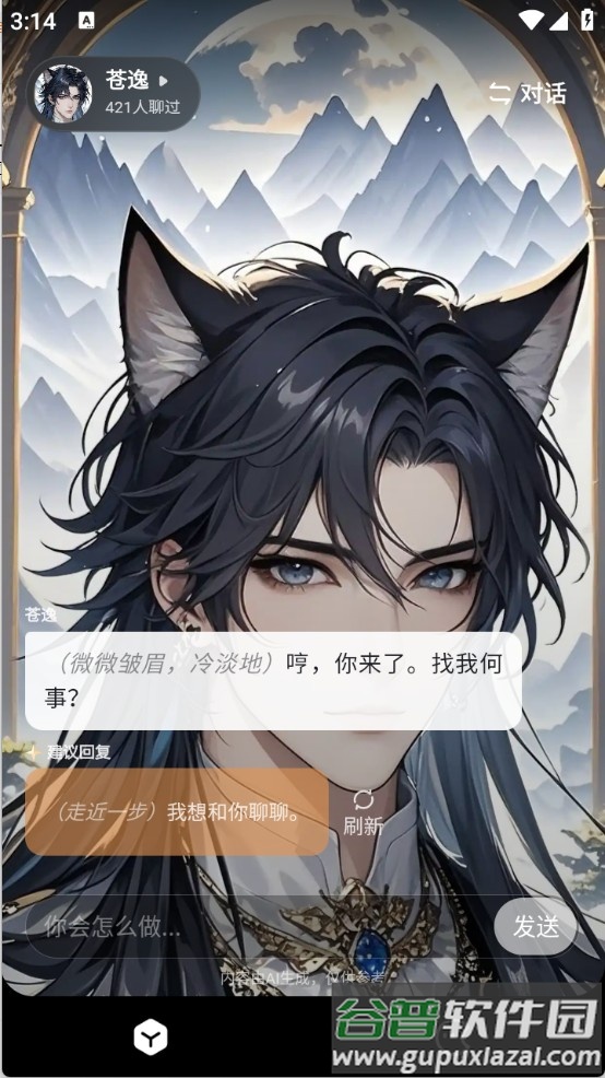 3. 选择你感兴趣的角色,在对话框里输入想说的话或问题,点击发送按钮即可开启对话。