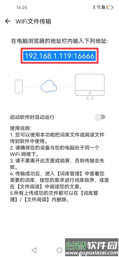 5、确保电脑与手机连接在同一WiFi网络下,使用电脑浏览器访问手机端显示的链接地址。