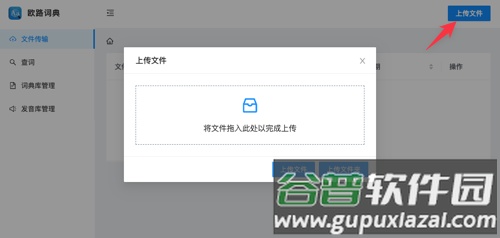 6、在打开的网页中点击上传文件按钮,将电脑中准备好的词典文件上传至手机存储的eudb_en目录。