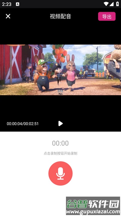 4、按下录制键开始跟读配音,完成所有句子录制后导出作品即可保存或分享。