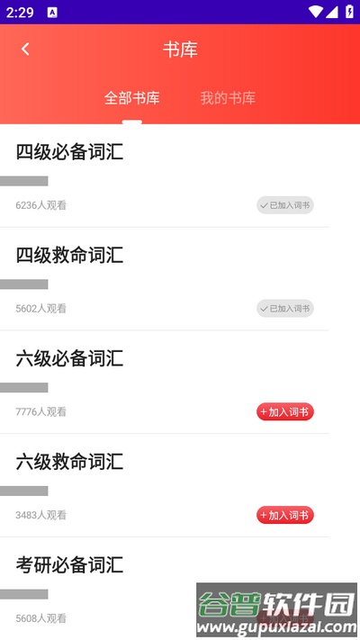 2、在词书库中根据自身需要选择合适类型,点击加入词书。