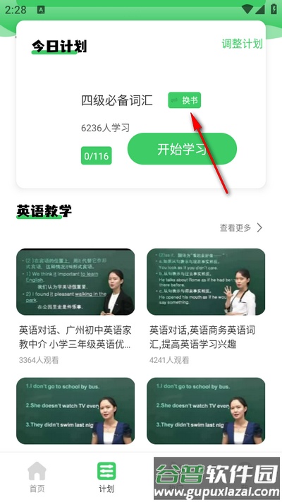 1、首先点击计划板块,然后选择上方的换书功能。