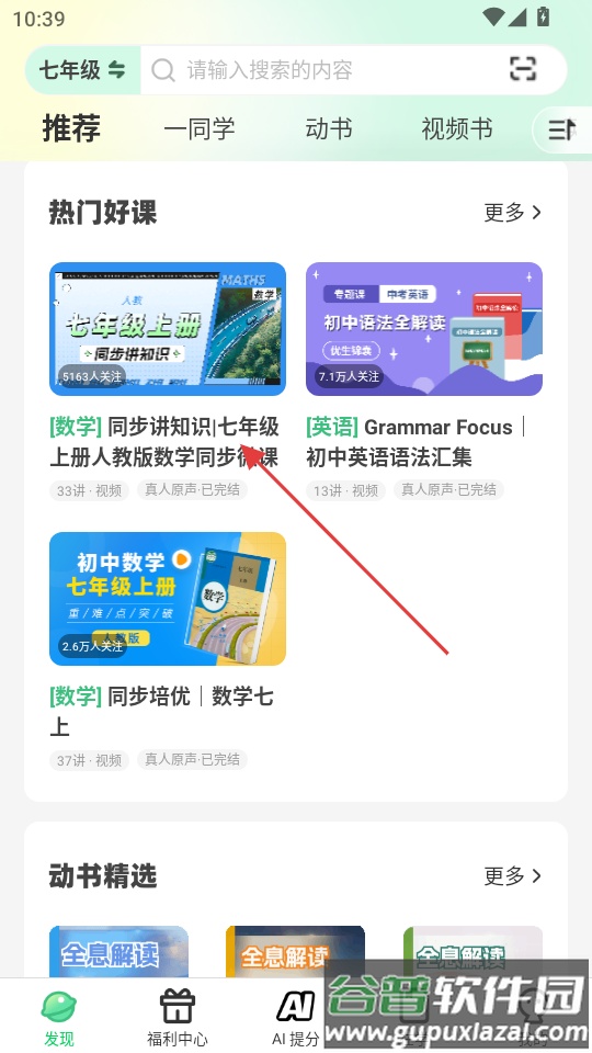 3、完成年级选择后,系统将自动更新显示该年级的相关课程内容。