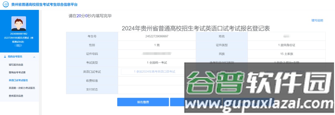 进入【我的高考报名】-【英语口试考试报名】,填报信息后扫码支付报名费。