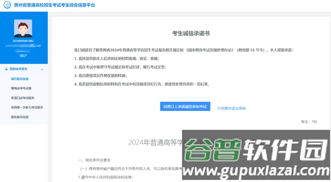 第一步:进入【我的高考报名】-【填写报名信息】,阅读并同意诚信承诺书。