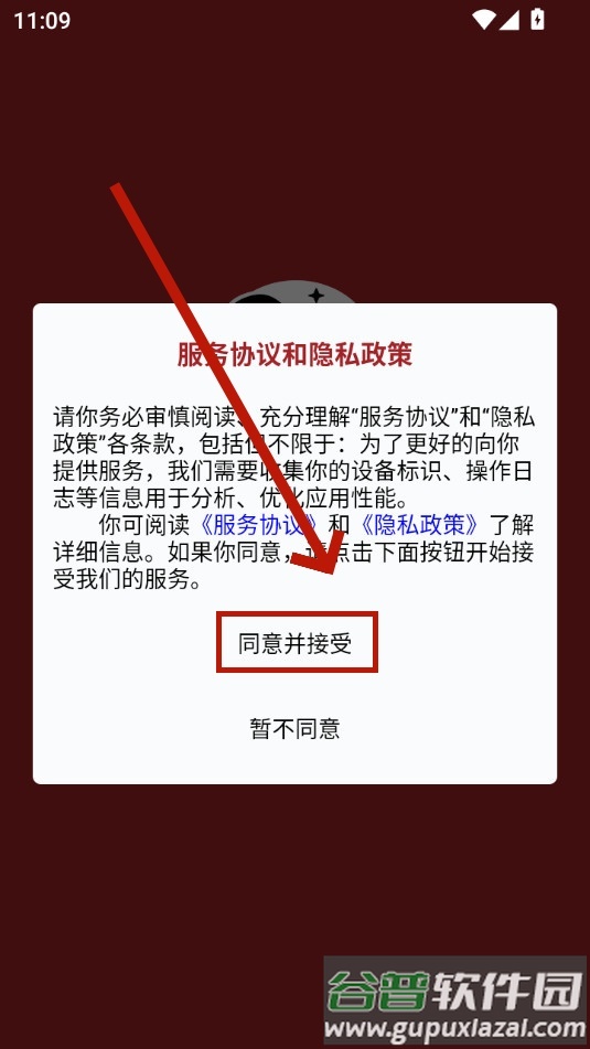 下载安装后打开鸦社集应用,点击同意并接受相关条款;