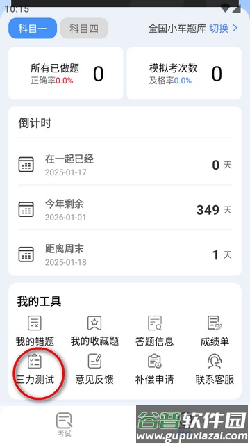 1、在我的页面中,找到“我的工具”区域,点击其中的“三力测试”选项。