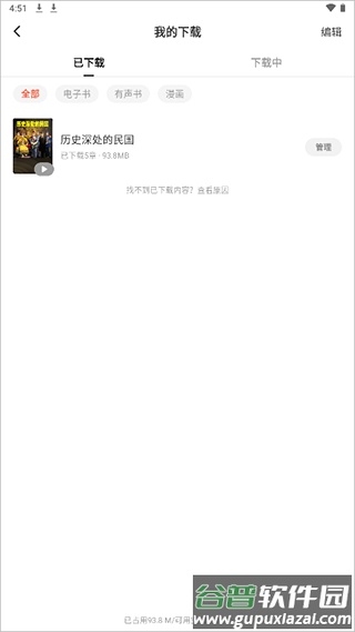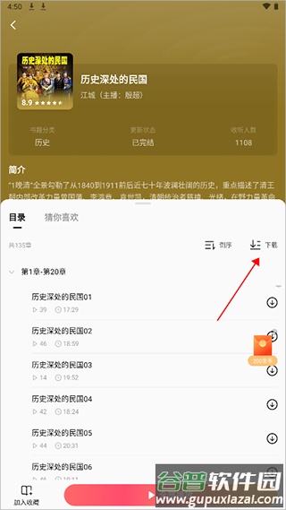 应用内的视频资源暂不支持下载,但听书与文本小说开放了下载权限。用户进入相应页面,选择需要的内容。