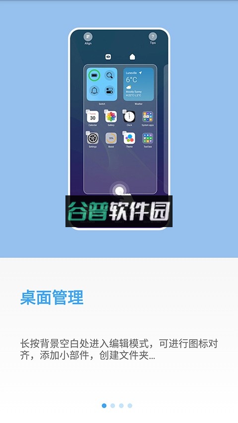 2、可以随意更换动态壁纸和图标主题,手动修改图标尺寸、边角形状以及桌面网格的疏密程度。