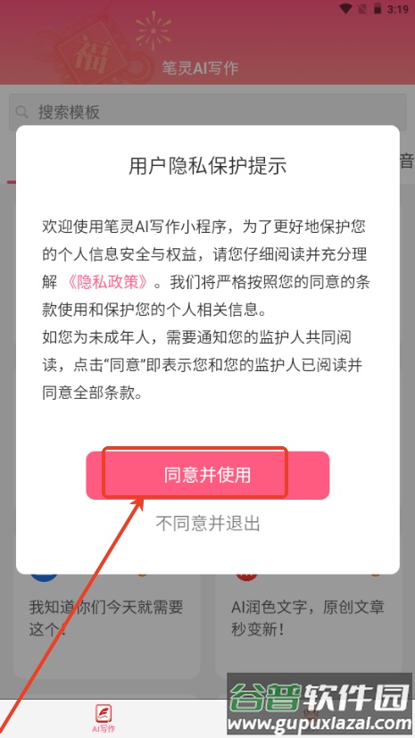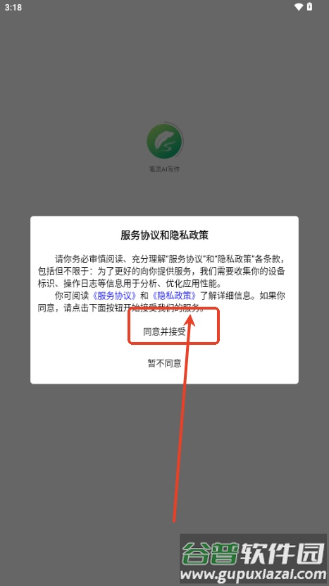 2、打开软件后仔细阅读并接受用户隐私条款;