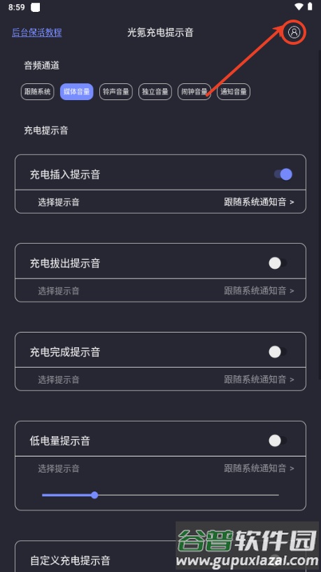 光氪充电提示音app最新版是一款能够自定义手机充电与断开连接时播放音效的趣味工具。用户可以为充电动作设置各种创意提示音,例如模仿经典影视作品中的充电音效,或是录制个性化的搞笑语句,让日常充电过程变得生动有趣。
