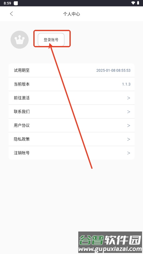 2、在弹出的页面中,选择登录账号的选项;