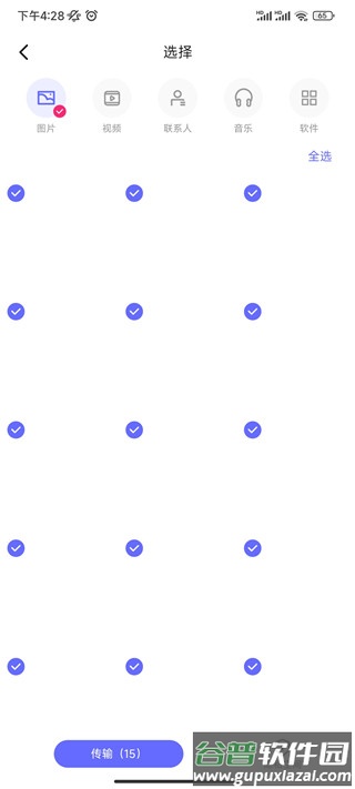 在传输界面,可以自由选择需要迁移的项目,例如手机应用、音乐文件或相册图片。