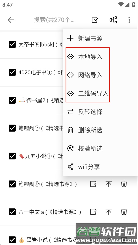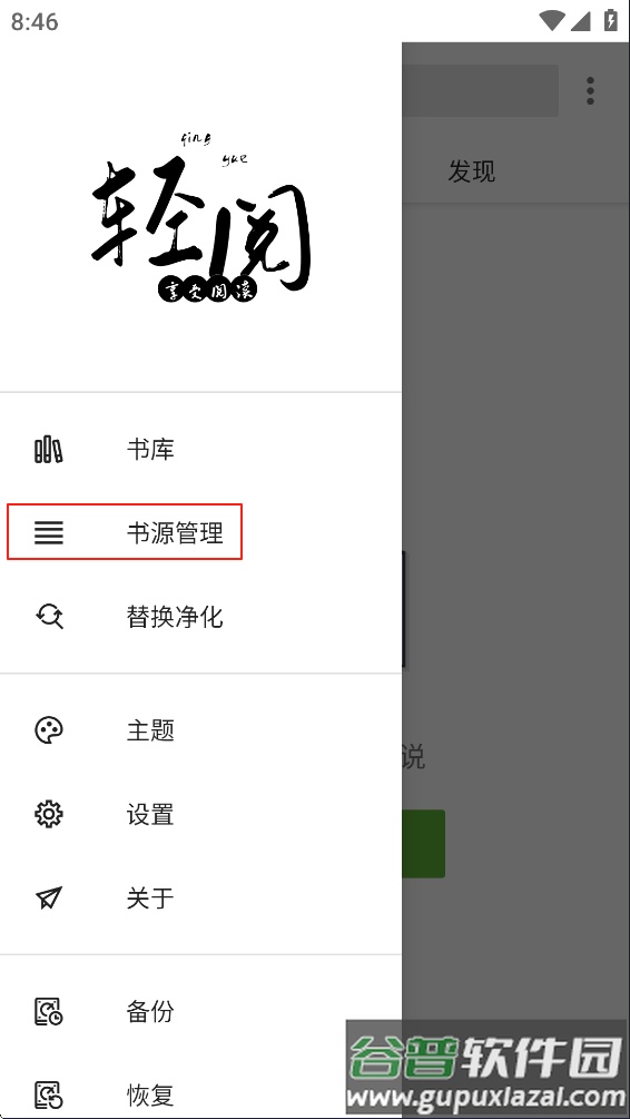 选择“书源管理”选项;