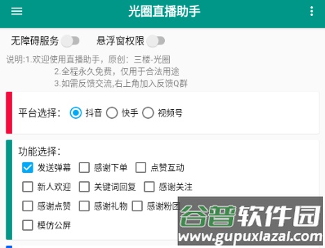 光圈直播助手是一款由葫芦侠大神独立开发的直播辅助工具,主要面向抖音带货直播场景。该工具能够在中场时段协助主播进行控场,跟随节奏自动发布弹幕内容。其运作基于手机无障碍功能模拟人工操作,不涉及破解或侵入系统,因此被宣称不存在账号封禁风险。