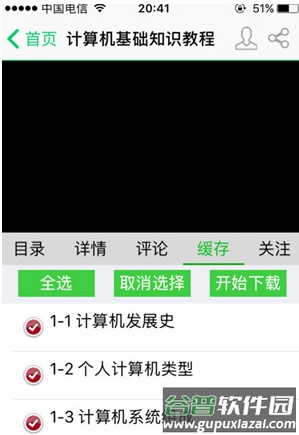 2、在课程列表中选择想要下载的免费视频,点击缓存按钮。