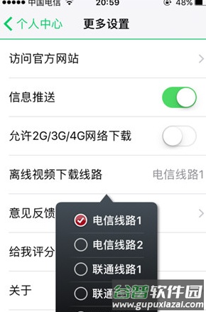 4、若遇到网络问题导致下载失败,可前往个人中心设置,切换离线下载线路,例如选择移动铁通线路。
