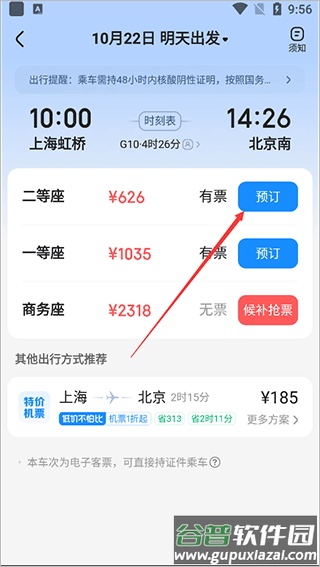 3、选择符合要求的列车,即可预订车票,没有位置还可以进行候补抢票,非常方便;