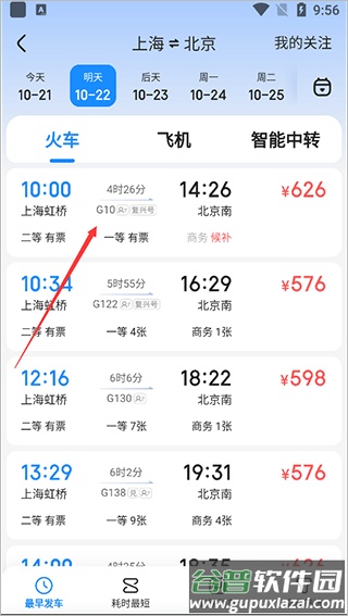 2、然后可以查看到当日所有列车和价格,根据自身需求选择时间,对比价格;