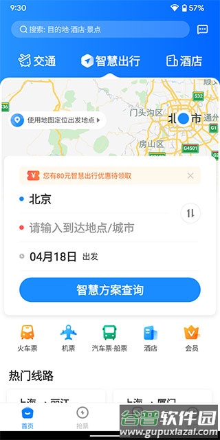 智行客户端提供机票、酒店、火车票、汽车票、景点门票预订;