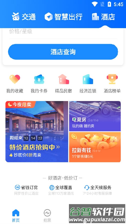2、酒店:支持国内海外百万余家酒店预订;领取大额礼包,享受优惠低价,兑换专属权益;